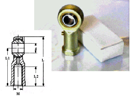 Testa a snodo con foro Filetto femmina Destro .Accoppiamento acciaio\bronzo